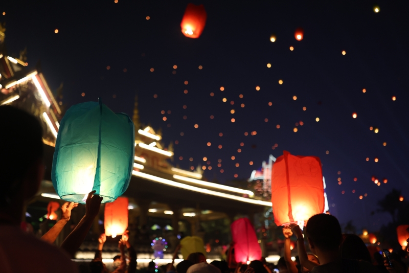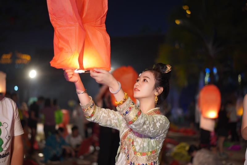 放孔明灯祈福是泼水节必不可少的仪式