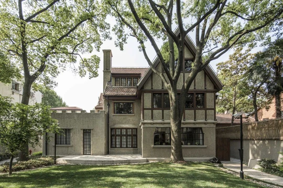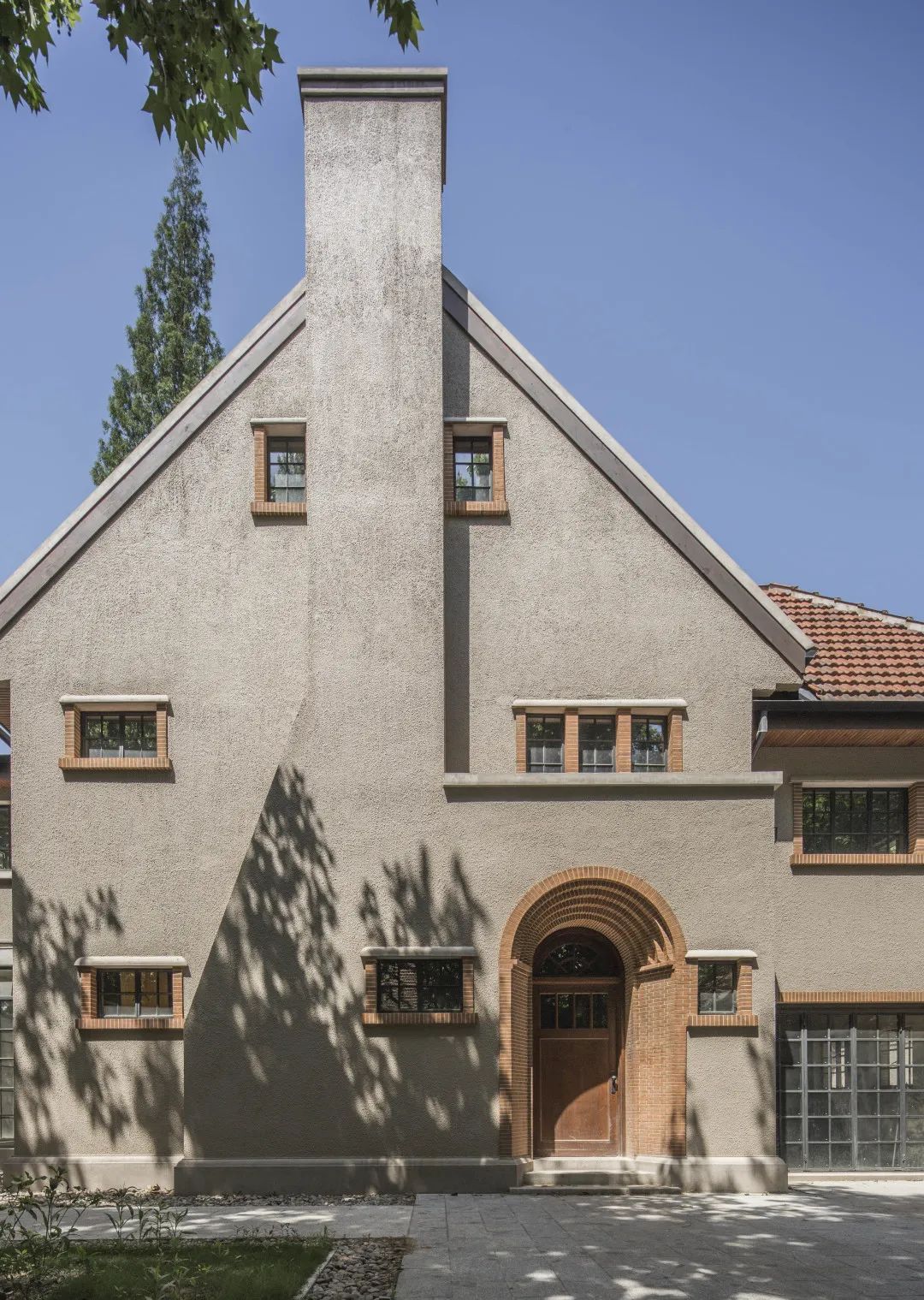 乌鲁木齐南路180、182号均为邬达克设计的英式风格花园洋房建筑。结合历史图纸和现状查勘,修缮保护了原有拱券门洞、烟囱等细部构件,恢复了原有墙面、屋面及门窗的材料与质感。