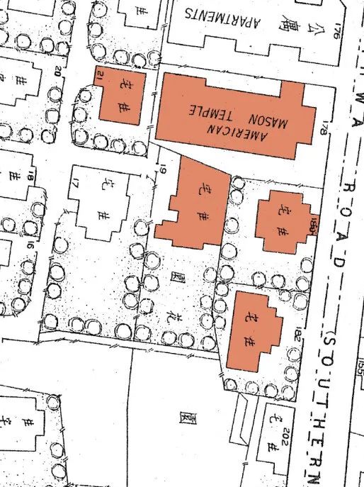 老上海花园洋房的花园环境是其重要的保护要素。在历史行号图和航拍图中,街区内各幢洋房均设计有南向花园,这些花园在岁月变迁中,或被加建建筑破坏,或因照看不佳而杂草丛生,失去了原有的环境风貌。