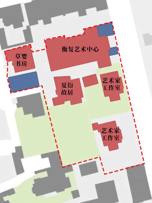 上海衡复艺术中心历史街区的各幢建筑中均植入了艺术、文化的功能:“美生堂”的二层大礼堂空间开阔,可举办大型艺术展览、演出等活动;夏衍故居和草婴书房则包含了艺术展示与交流的功能,可举办艺术沙龙等活动。