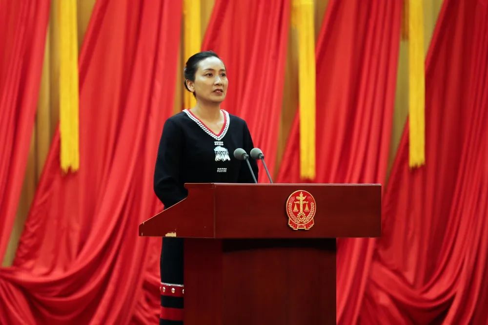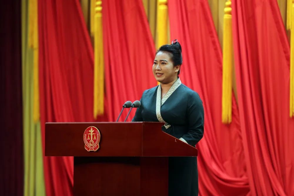报告团成员之一,沧源佤族自治县人民法院党组书记、院长吕丹讲述鲍卫忠同志先进事迹。沧源地处祖国西南边陲,与缅甸接壤,是全国最大的佤族聚居县,也是一个从原始社会一步跨越到社会主义社会的千年民族直过区。这里面积不大,但99%以上都是山区;人口不多,却有佤族、傣族、彝族等20多个少数民族混居于此。这里的执行案件标的额一般都不大,但就是这几百块、几千块钱的小案子,鲍卫忠每次都办得一丝不苟,他常说:“我们办理的不仅是案件,更是边疆的稳定、民族的团结。”