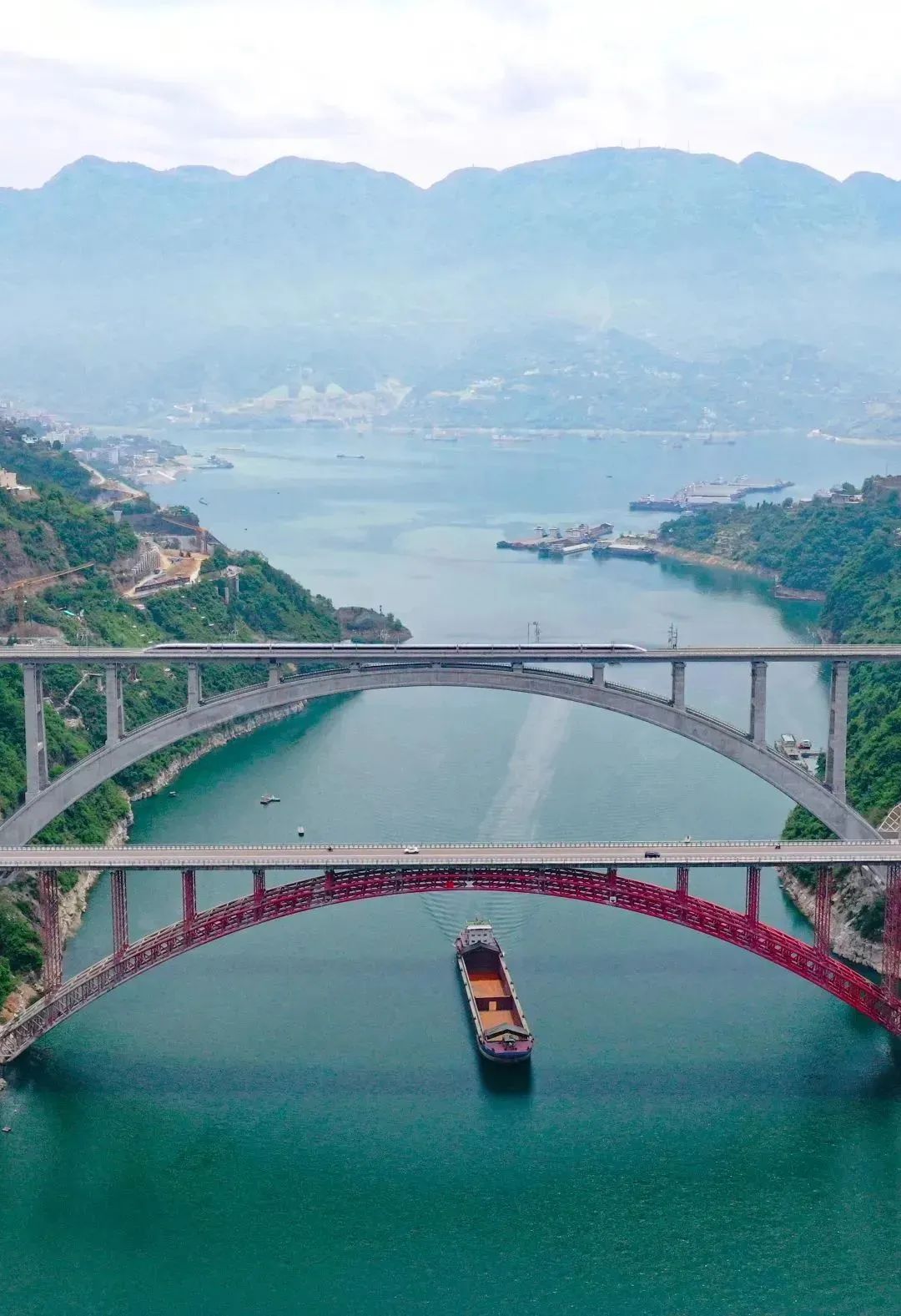 碧水之上、山谷之间长虹卧波、耸入云端
