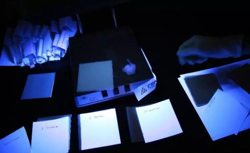 消费者担心的荧光增白剂,国家早已明令禁止使用。有研究人员对四种大品牌的普通纸用紫外波进行荧光检测,一般来说,纸张里如果有荧光剂,在紫外线灯下会出现蓝色片状,但经检测,这四种品牌都未出现蓝色片状。