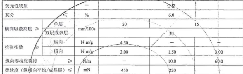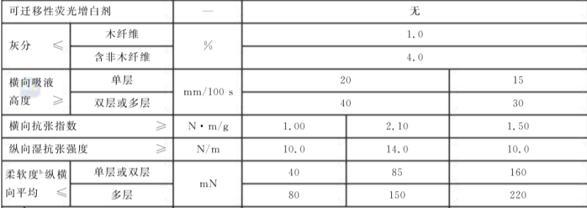 同时在鉴定中,也包含了其他维度的测评,包括荧光增白剂含量、横向吸液高度(吸水性能)、横向抗张指数(耐撕)、纵向湿抗张指数(吸水后耐撕)这几项。