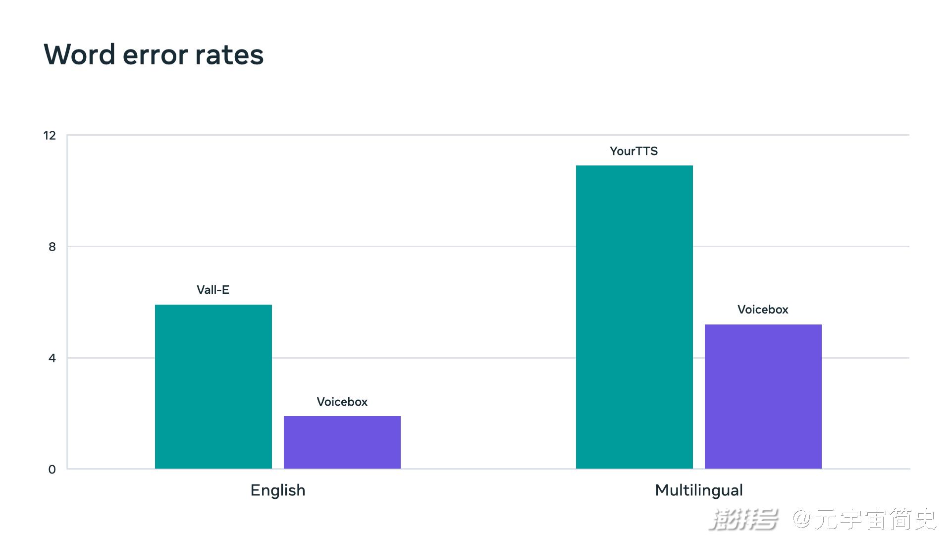 VoiceBox在词错误率方面实现了新的最先进结果,超越了Vall-E和YourTTS