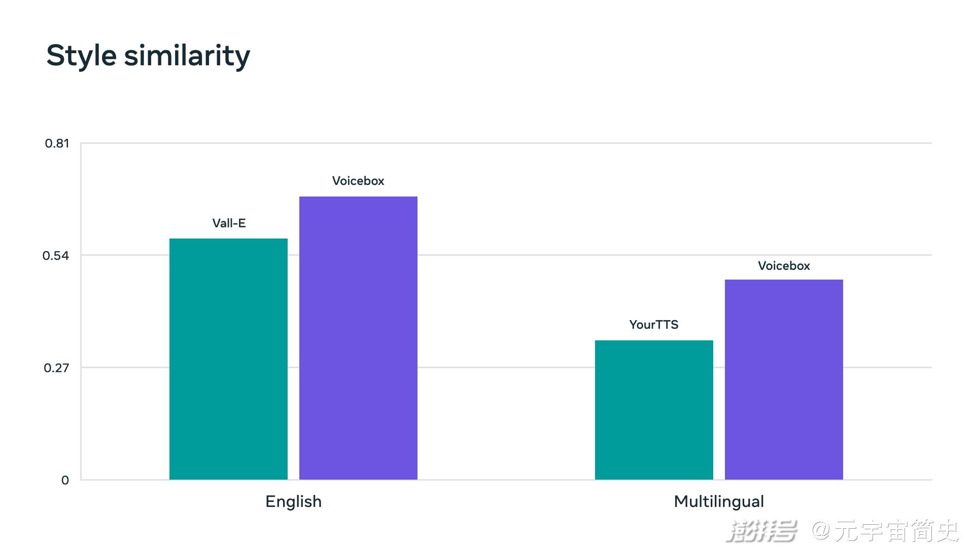 VoiceBox还分别在英语和多语言的基准测试上,在音频风格相似度指标上达到了新的最先进水平利用Meta的AI突破性技术,VoiceBox的强大功能能够支持多种任务:
