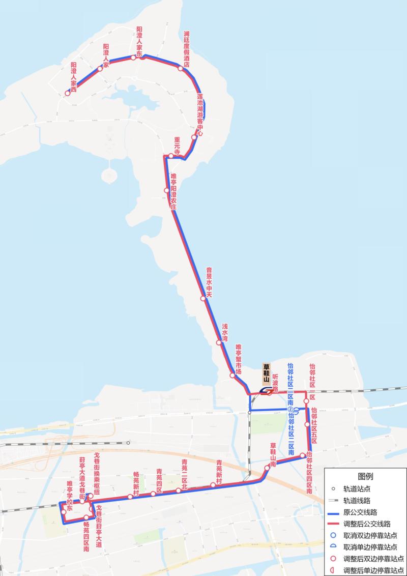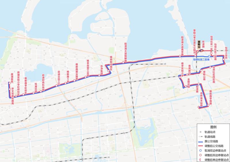 走向调整:由“阳澄环路、阳澄湖大道、夷陵山街”调整为“阳澄环路、听波路、夷陵山街”。