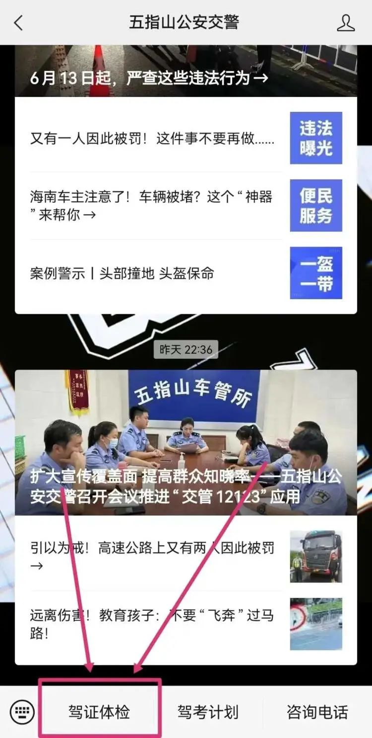 为不断推进公安交管“放管服”服务工作,方便群众申领机动车驾驶证,五指山公安交警会同医疗机构创新试点推出驾驶人线上体检业务,让群众更为方便、快捷地完成驾驶证体检。具体操作流程如下:1.提交资料