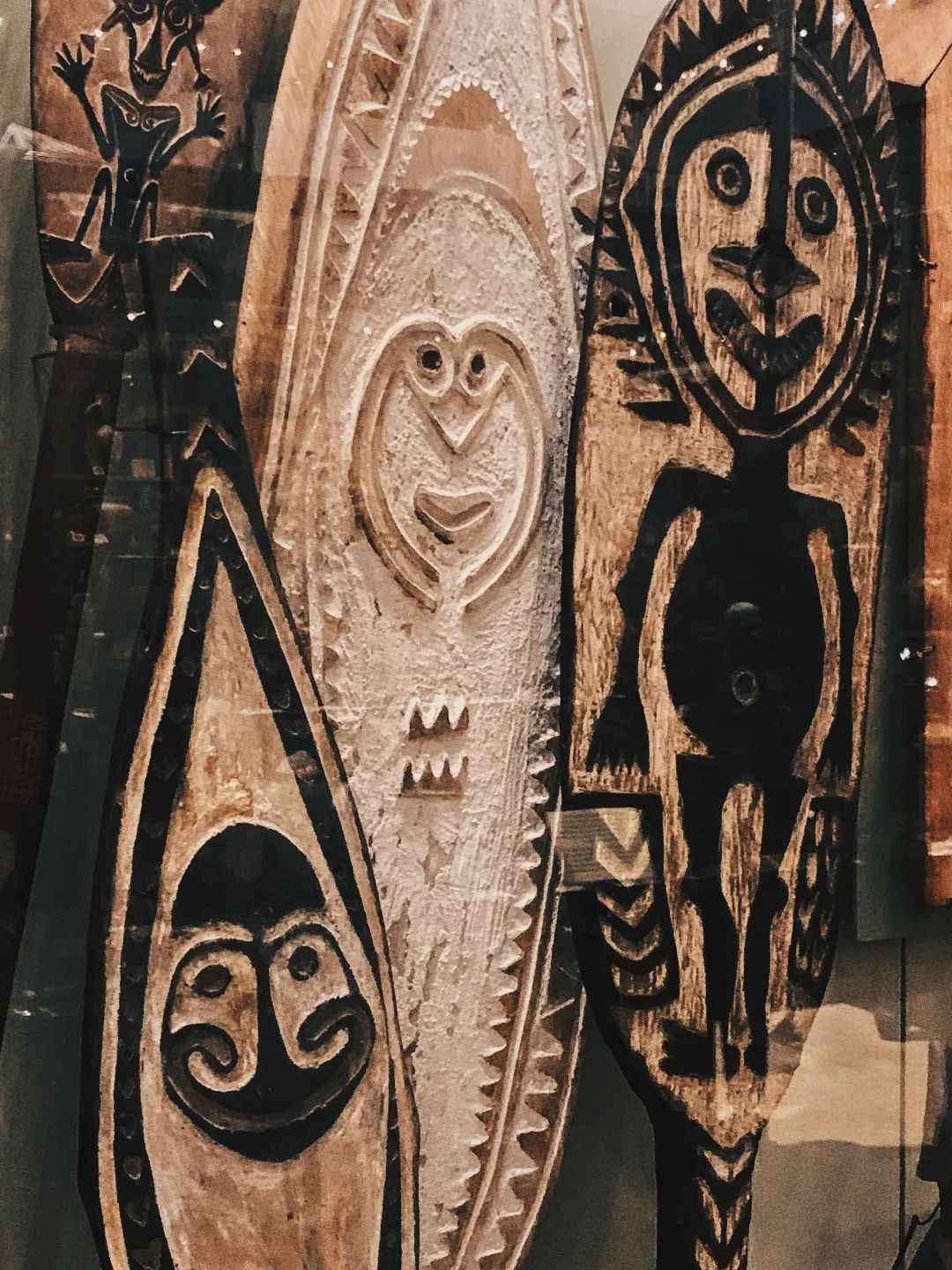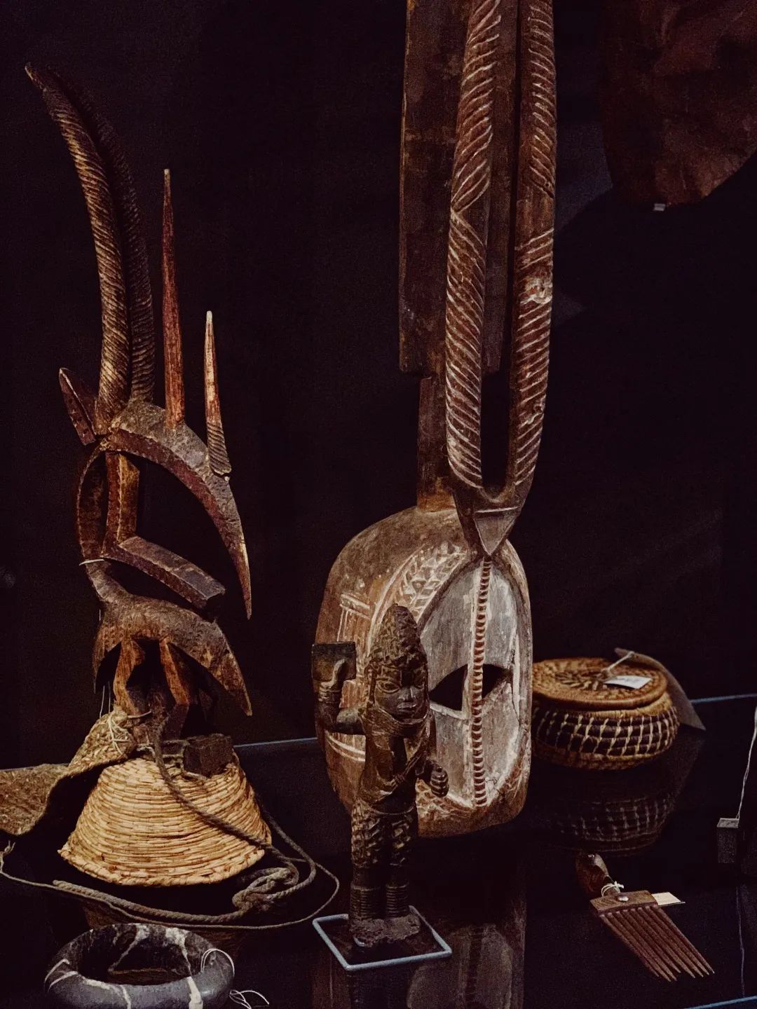 站在展厅里,被橱窗里各种面具盯着看会觉得有点瘆的慌;各式各样的原住民护身符有一整排展柜,我相信它们仍蕴藏着神秘力量;乐器就在周围的展柜里无声地演奏着,它们要说的是,乐器即法器。而人,总需要看不见的力量指引,意识到面对兵荒马乱或是欣喜若狂都需要同样的心力,站稳脚跟、保持镇定。