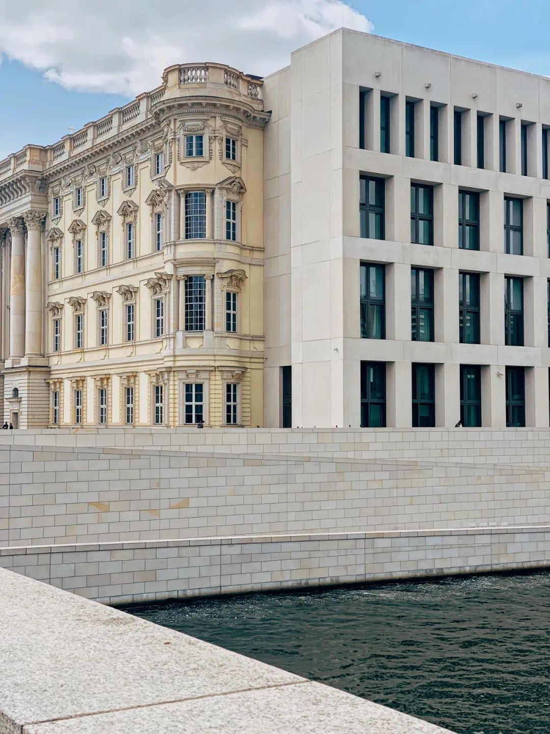 洪堡论坛位于重建的柏林宫内,外立面有三面是原来的巴洛克风格,面朝史普雷河(Spree)的一面是由意大利建筑师Franco Stella打造的现代主义外墙,意在表达过去和现在的对比与融合
