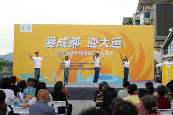 用大运音乐,点燃蓉城夏日激情。6月15日,大运会音乐情景剧《爱在成都》在成都高新区五岔子大桥唱响,青春的乐曲在横架于江河之上的蜿蜒桥体回荡,串联起两岸灯火,点燃蓉城夏日激情,同时也拉开了“爱成都 迎大运”成都大运会主题音乐剧进社区巡演新一场的序幕。