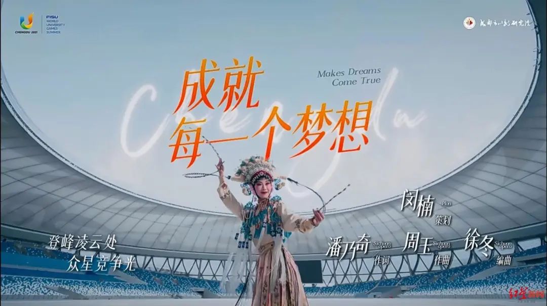 今年4月,在大运会倒计时100天之际,《成就每一个梦想》MV重磅发布,引起社会的热烈反响,大家对“戏歌”这一新颖的表演形式纷纷点赞。“成都大运会是全世界的盛会,川剧当然要发声。”成都市川剧研究院宣传策划部主任熊剑表示,“我们每一位演员和创作者都感到非常自豪,都以最饱满的热情投入到创作表演中,希望可以为成都大运会贡献一份力量,同时也希望通过大运会这个舞台,让世界看到川剧,认识川剧。”