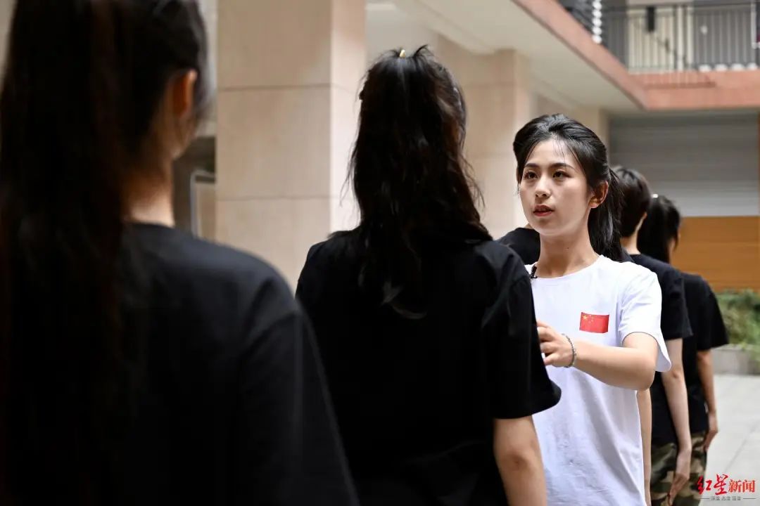 在升旗手培训团队里,24岁的曹玉蕊是唯一一名在校学生,也是唯一一名女教练员。曹玉蕊告诉记者,自己入伍志愿是希望到艰苦地区服役,在体检过程中由于176CM的身高被直接划去参加三军仪仗队的面试,并最终成为中国人民解放军仪仗司礼大队的一名军人。当年三军仪仗队选拔女兵全国只招40人,18岁的曹玉蕊从千余名应征者中脱颖而出,成为年龄最小的女仪仗队员。现在,她是西南石油大学的一名大学生,在大运会的舞台上继续发光发热。