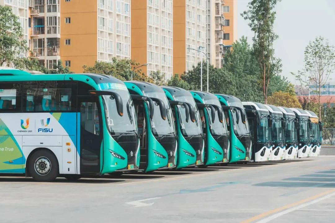 成都大运会高效利用现有公共资源,将城市侧更新的一批新购公交车短期用于大运会期间交通保障,大大减少车辆采购支出。总共落实1340台新能源大巴和1000余台新能源小车作为运动员、技术官员及媒体等交通服务车辆,大运村到中心城区场馆交通90%使用新能源车,大运村内部100%使用新能源摆渡车。