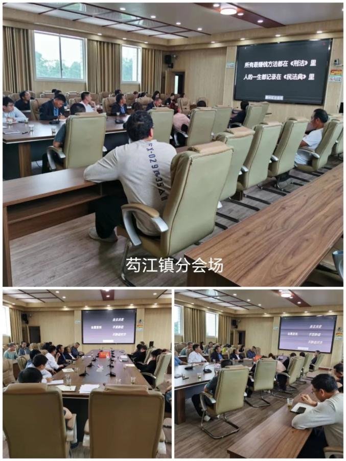 此次培训,主会场参训人员70余人,各镇(乡、街道)分会场参训人员700余人。通过培训,进一步增强了基层“法律明白人”对习近平法治思想、宪法、民法典的理解和认识,在基层形成办事依法、遇事找法、解决问题用法、化解矛盾靠法的浓厚氛围,让人民群众积极参与到基层社会治理工作中,更加真切感受到法治建设带来的获得感、幸福感、安全感。附:各镇乡分会场图片