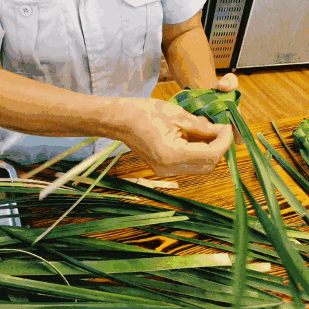 雷州人民凭借一双巧手,把编织蒲席的手法运用到包粽子上,以簕古的叶子编织成“鸭母”形状,再加上当地独特的食材“金捞叶”(蛤蒌)作馅,煮熟后的簕古味道浓香吃起来油而不腻,风味独特。
