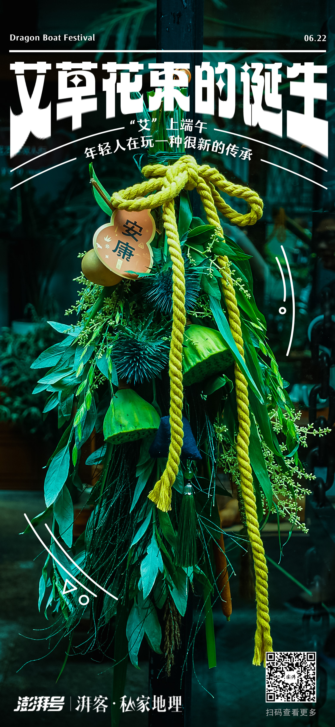 我是阿四,湃客·私家地理栏目的一名编辑。每年端午,比起怎么过节,我其实更关心什么时候放假。尝尝奇葩口味的粽子,吐槽吐槽痛苦的调休,好像三天假期就这样过去了。但今年,我发现年轻人中间流行起了一个特别有意思的东西——艾草花束。