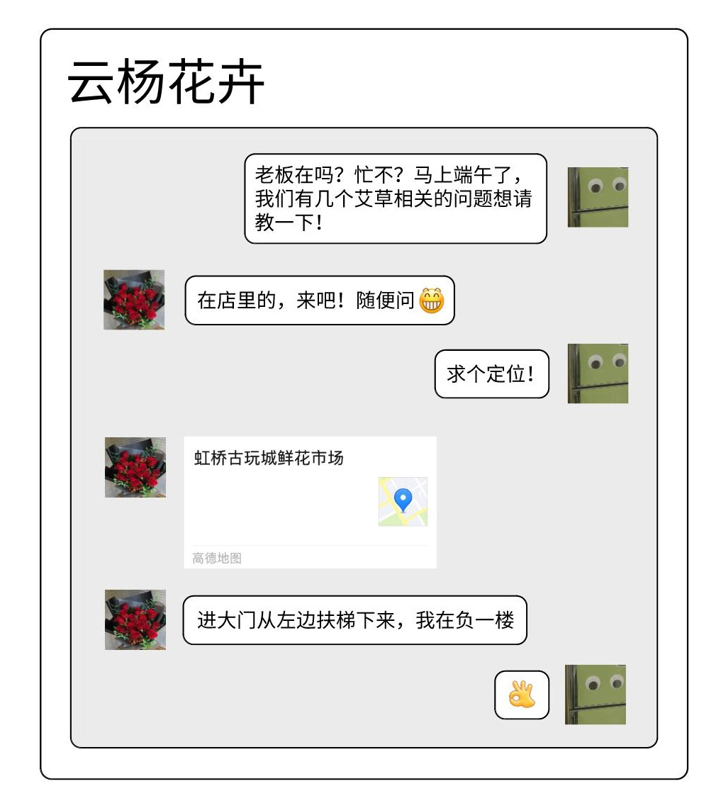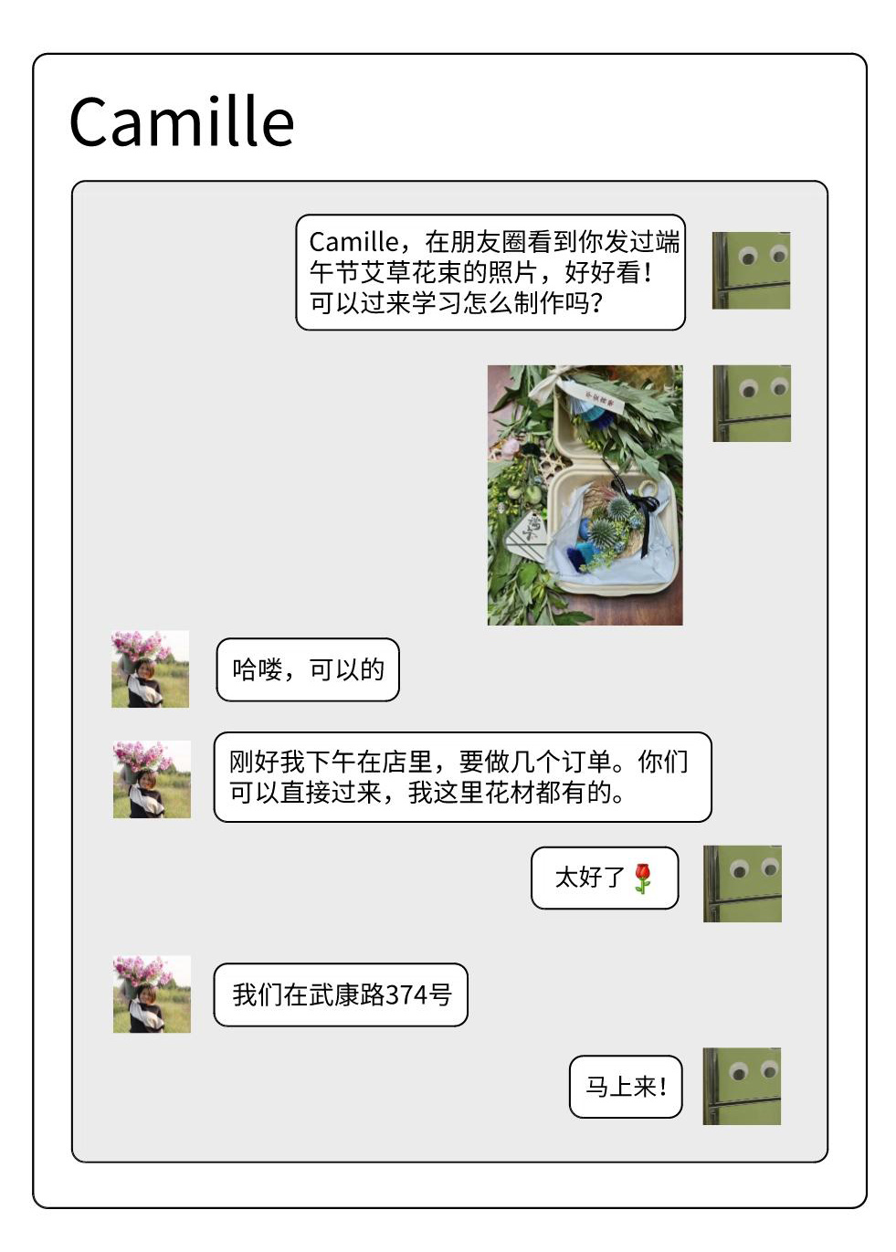 正好在朋友圈刷到花店主Camille晒出了她制作的艾草挂件,就给她发了消息: