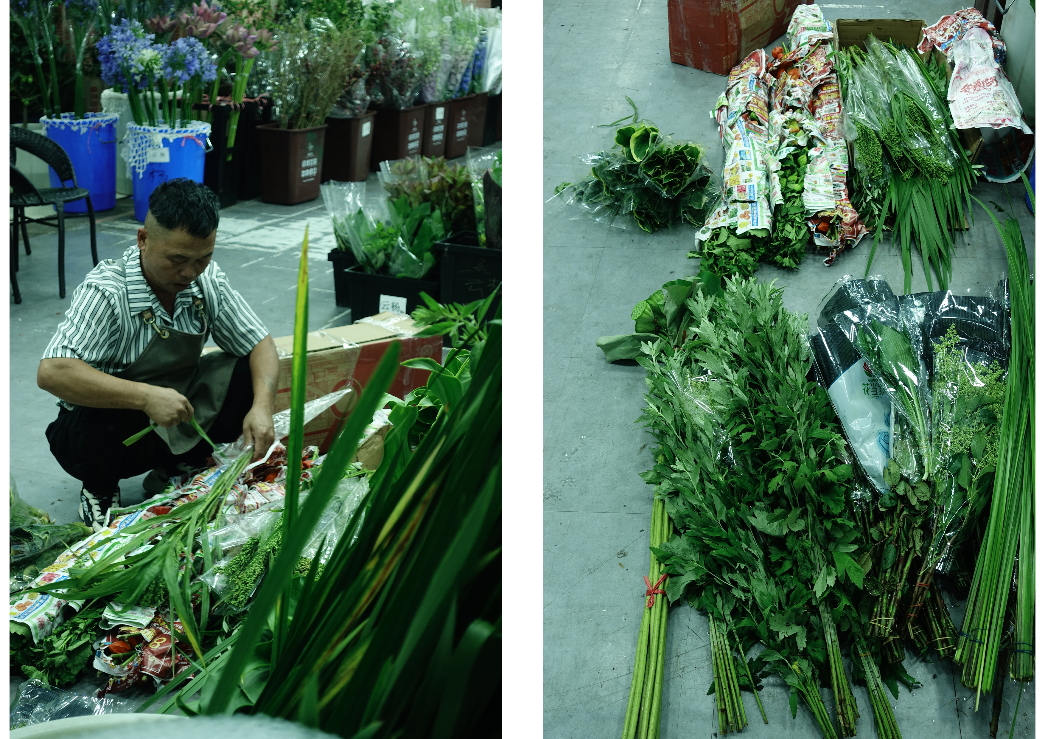 了解完花市行情之后,我真的很想知道老板口中“花艺师灵巧的手”是怎么对艾草“下手”的。