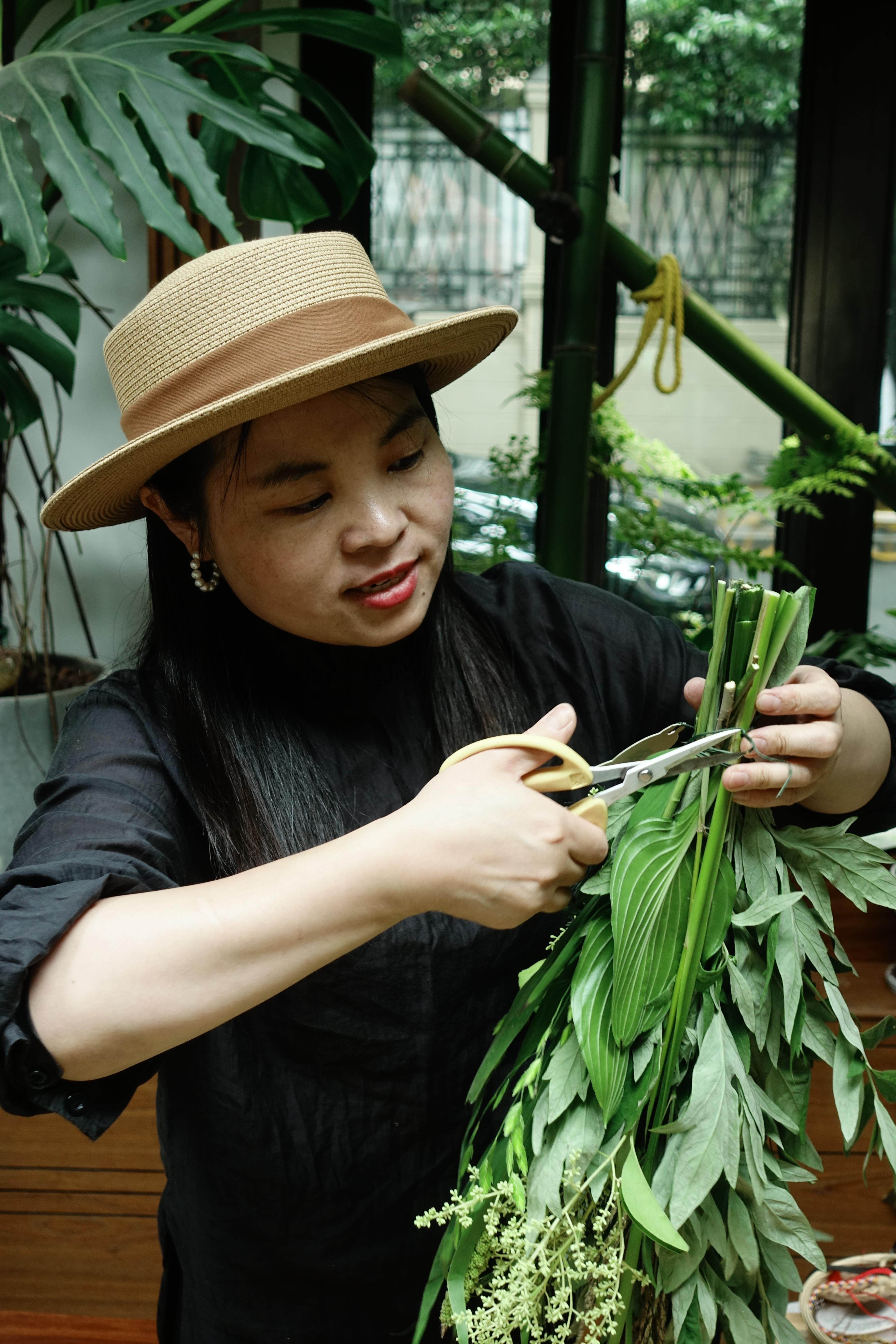 如果想要自己制作艾草花束,我建议可以去花市或者在花店里买材料,或者索性参加DIY课程。因为花店的材料会比较丰富,花市也会提供“端午四件套”,至少会有四个不同的品种。DIY课程的话,现在公司团建或者和闺蜜一起来做的比较多,大大小小会做好几个不同的,送给不同的人。相比于购买成品,手作的花束更独特。在休息的时候约上三五好友,做做手工、聊聊天,也是一件很治愈的事情。