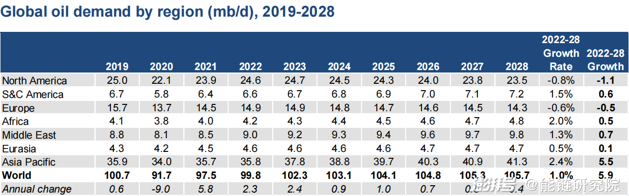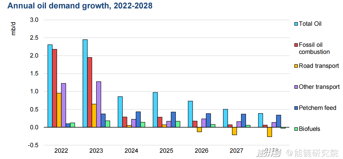 2022-2028年度石油需求日均增量 来源:国际能源署