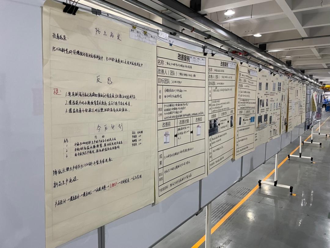 他们用笔勾勒出生产原理和可改善的细节,并在图画旁规整地标注着解决问题的思路、逻辑等等。长长的公示板上,有“反思”“计划”“改善案例”等众多内容。某种程度上,这些都是晨光200亿营收、数百亿市值背后的重要支撑。