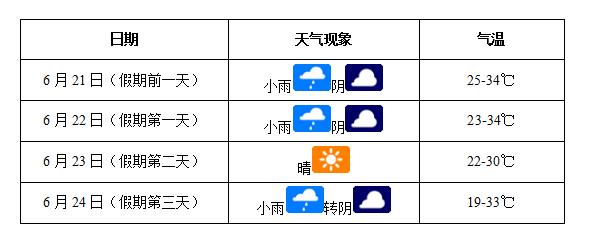 根据市气象台预测,端午期间雨水较多,要防范强降水、雷暴大风等强对流天气带来的不利影响。具体气象预报如下: