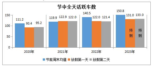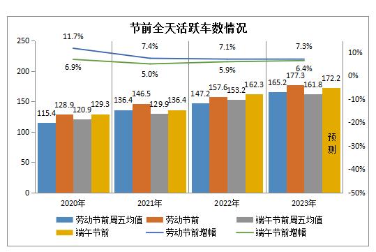 预测端午节前活跃车数将低于劳动节前,为172.2万辆左右的次高水平,今年劳动节前一日为177.3万辆。(二)拥堵指数