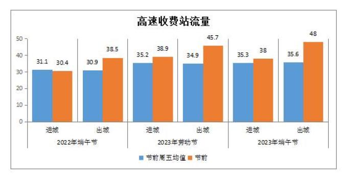 出城流量明显高于进城。端午节前高速公路收费站出城流量集中,将达到48万辆左右。