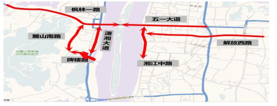 节中第一天为端午节,上午7-12时仍有大量出城返乡车流,各连接主要收费站的出城通道交通繁忙,至12时进出城通道出城方向交通恢复正常;假期第一天下午至假期第二天,城区内商圈景点车流、人流较为集中,特别是以橘子洲大桥和五一大道、麓山路为轴心的岳麓山-橘子洲景区和五一商圈区域周边道路尤为明显。