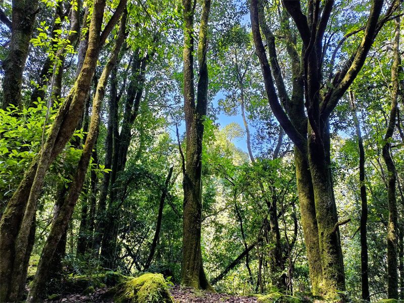 白竹山位于双柏县城东南部,巍峨苍翠、群峰连绵,四季云雾缭绕,美景旖旎。山中万亩茶园青翠欲滴,阡陌纵横的茶垄沿着山脊蜿蜒延伸向远方,无边无际的茶园风光一眼望不到尽头。