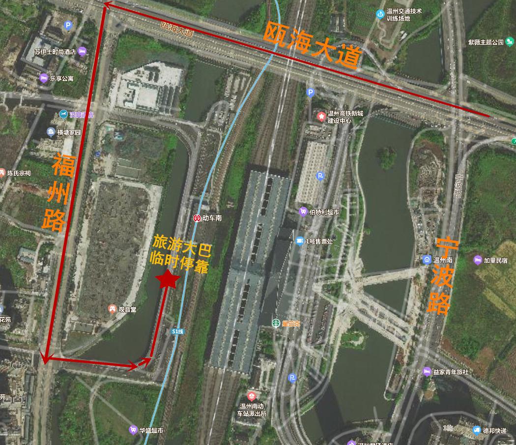 停车指南:请市民不要将车辆停放在温州大道路边,建议驾车前往的市民将车辆停放在温州站东及站西停车场及周边各商住楼的地下停车库。