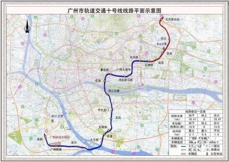 截至目前,地铁十号线(西塱-石牌桥)14座车站中,1座进行前期准备,8座已封顶,5座进行土建施工;14个区间中,9个已贯通,4个进行土建施工,其余进行前期准备工作;出入段线进行土建施工。4座车站进行机电施工。广钢新城车辆段进行土建施工。地铁十三号线二期(朝阳-鱼珠):