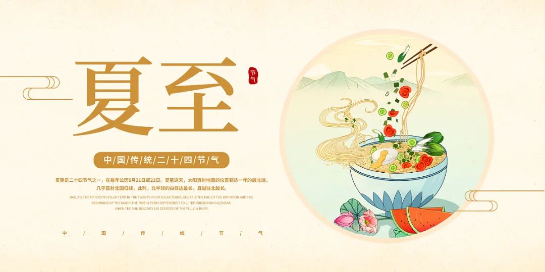 民间有夏至吃面的习俗,夏至是一年中白昼最长的一天,面条之绵长,寄寓了生命之长的美好愿望。