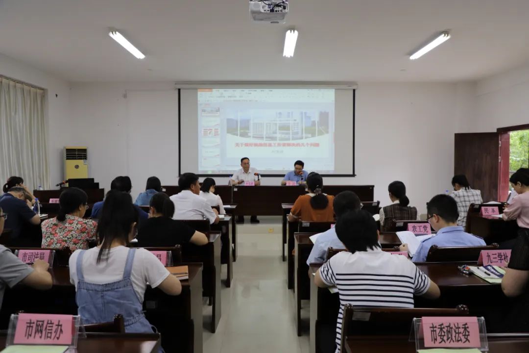 6月20日下午,2023年全市统战信息工作培训会在市委党校召开。自治区党委统战部办公室主任叶发祥同志莅临现场授课。各县(市、区)党委统战部分管信息工作的副部长、信息员,各民主党派来宾市委会(基层委员会、总支部)、领导小组成员单位信息员,以及部全体干部等60人参加培训。