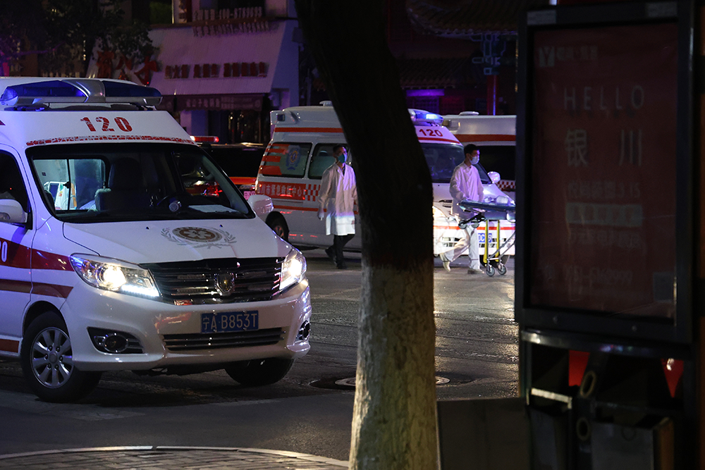 22日凌晨1点20分左右,还有救护车往返爆炸现场。