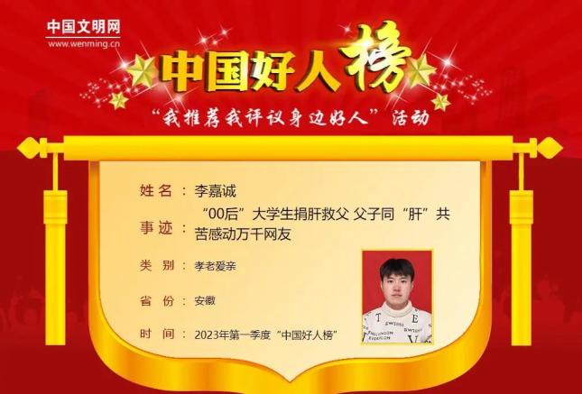 03捐肝救父、父子同“肝”共苦感动万千网友的涡阳县“00后”大学生李嘉诚。