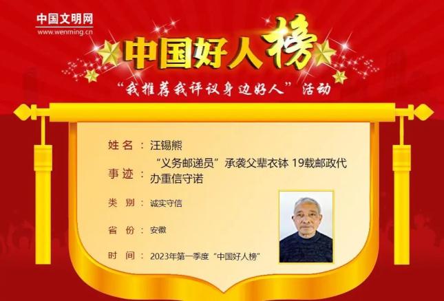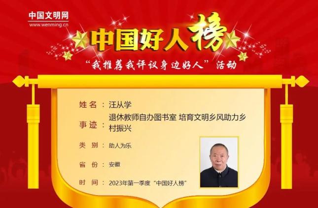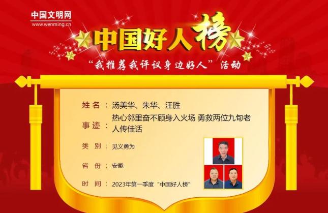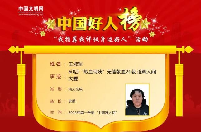 6月21日,中央文明办发布2023年第一季度“中国好人榜”,安徽12组16人荣登榜单。
