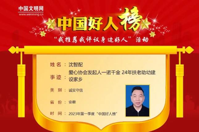 05一诺千金、24年扶老助幼建设家乡的蚌埠市阳光爱心协会发起人沈智配。