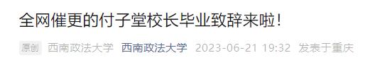 付子堂校长讲完致辞只用了15秒钟。6月21日晚,西南政法大学微信公众号发布了付子堂校长毕业致辞全文。