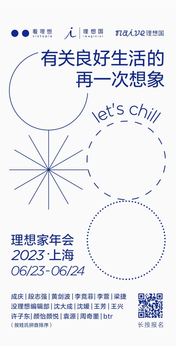 6月23-24日,我们邀请你来参加一场题为“有关良好生活的再一次想象”的聚会(是的,理想家年会2022/2023终于来了)。尝试短暂脱离周遭的重力,在一个真实的空间里,享受一些智识的碰撞,发现一些未知的快乐,或者单纯庆祝生活的无意义。