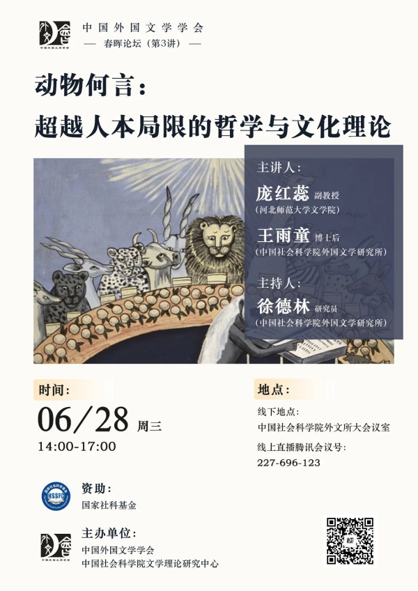 本次活动,两位主讲嘉宾将分别以《哲学后人类主义视域中的动物问题》《同苦共生:多物种理论的历史情境及学术呈现》为题做主题报告。庞红蕊副教授认为,哲学后人类主义领域中的动物问题研究应反思人文主义传统,揭示“人”这一概念的历史建构性及其在政治、伦理等方面所招致的灾难性后果;它应破除生命等级论,破除简化主义和本质主义的思维方式,珍视每一个生命个体;它应取消人/动物之间的二元对立,从伦理层面重塑人与动物之关系。王雨童的报告则关乎一个思想主题:拆解具有历史限定性的人本知识,构建多物种参与者的本体论、认识论和行动方法。