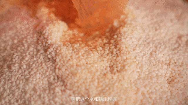 烧灰,是将叶子与枝干一起烧的。为了防止久烧结炭,在烧灰的3个小时里,需有人在火盆旁不停地用杆子搅拌。50斤黄荆柴,最终化作了5两灰。待灰冷却,倒入布袋,将其浸入沸水内煮汤。20分钟后,散发着植物清香的淡黄色灰汤煮成了。再将灰汤倒入糯米中浸泡,接下去的几个小时,淡黄色逐渐与米白色相融。