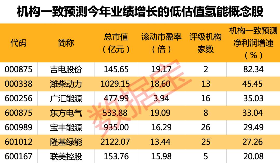 低估值业绩高增长氢能概念股出炉