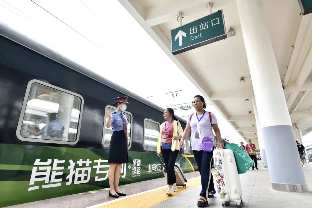 6月22日,端午佳节。18时40分,一列满载着300余名旅客的Y152次“熊猫专列”缓缓驶出成都西站,驶往目的地北京站,标志着由成都局集团公司首次开行的“四省‘邮’幸、‘熊猫’同行”主题旅游专列正式启程,将带领旅客开启为期11天的“愉快一夏”之旅。