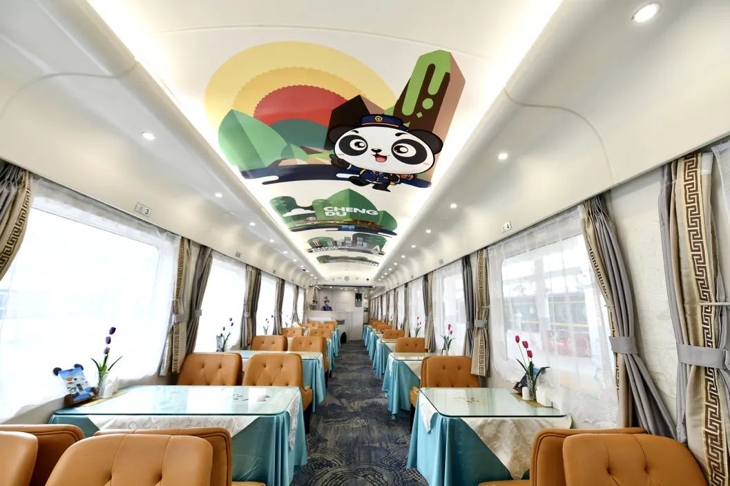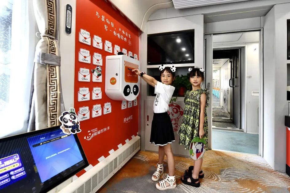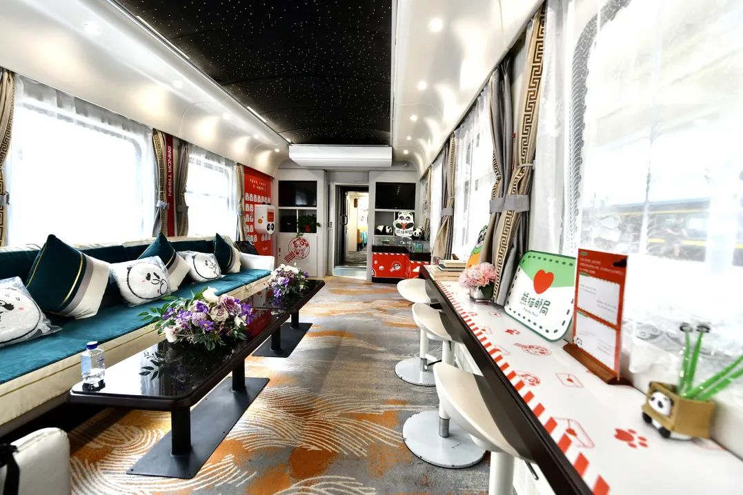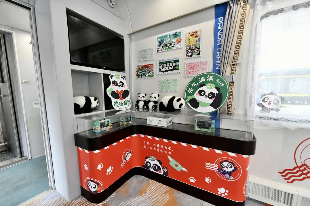 “我们在多功能车厢各区域的摆放陈列上,可谓是‘熊猫感’全方位拉满,邮筒、联名明信片、打卡纪念章、打卡护照等等应有尽有,让旅客在体验铁路旅行的同时,‘慢享’邮政特色文化服务。”中国邮政集团有限公司成都分公司相关负责人说。