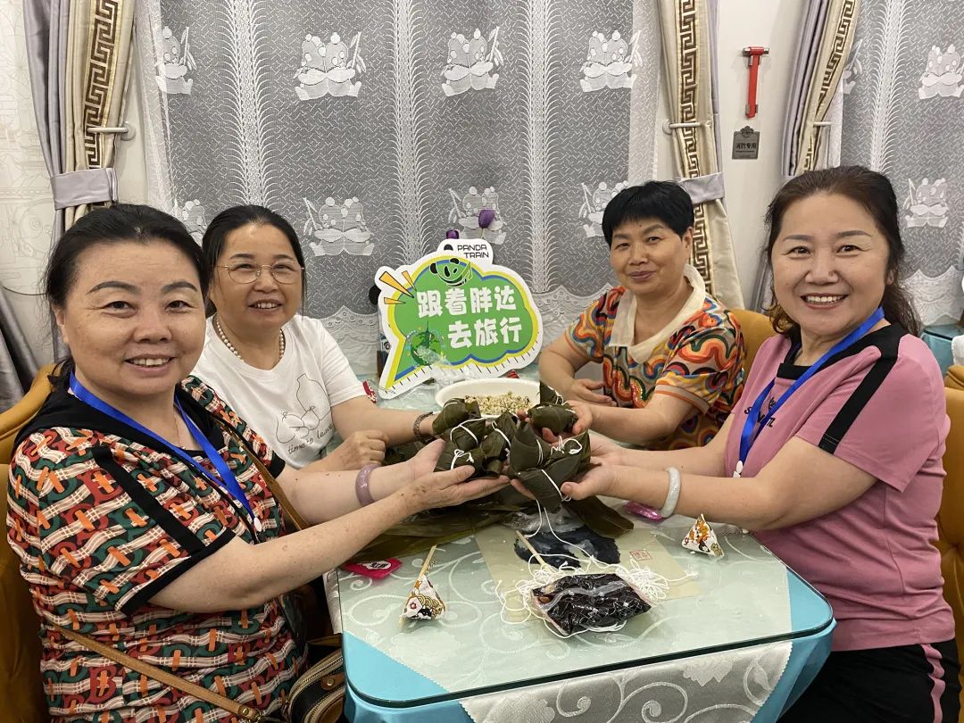 为让旅客在“熊猫专列”上度过一个不一样的端午节,成都客运段北京一队工作人员为旅客详细讲解端午节的来历,送上亲手包的粽子、盐蛋和香囊,开展了猜谜语、朗诵诗歌、歌舞表演等活动,并与小朋友们共同绘制水彩画,整个车厢里洋溢着浓厚的节日氛围。
