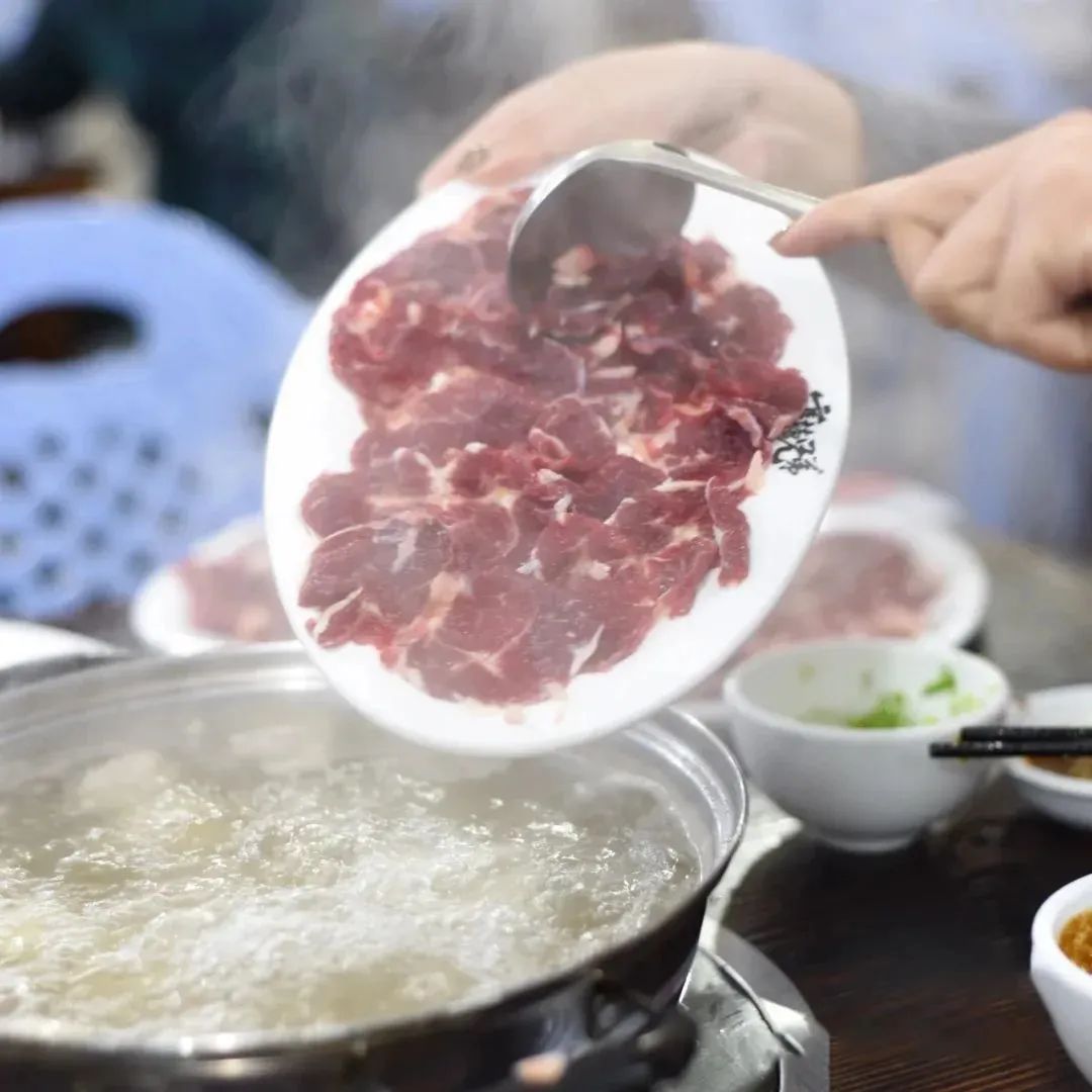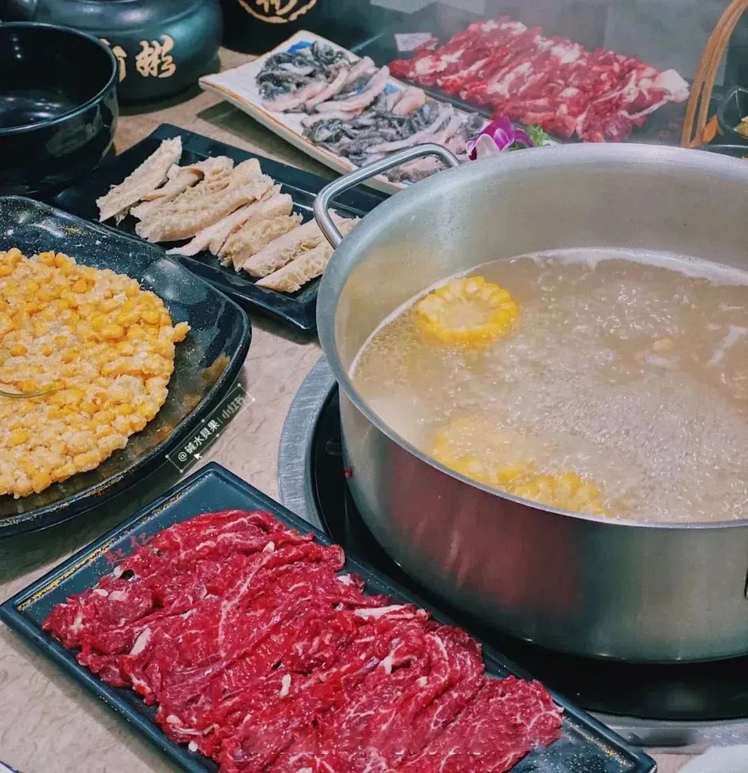 先喝一口汤暖暖胃,再下肉,8秒等到肉变色出锅,吊龙香甜软嫩,雪花柔嫩多汁,
