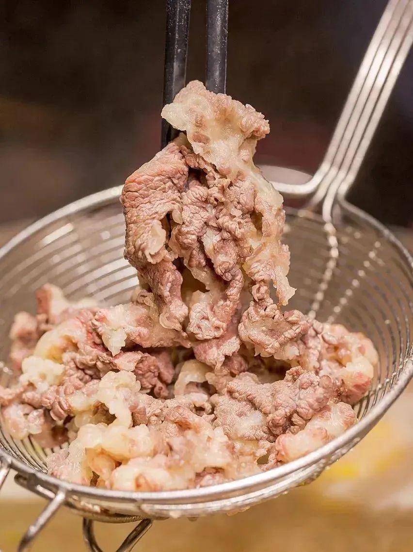 其中几乎只有在潮汕地区能见到的胸口朥,油脂丰满肥而不腻,反而口感筋道,一顿牛肉火锅足以慰藉所有风尘。