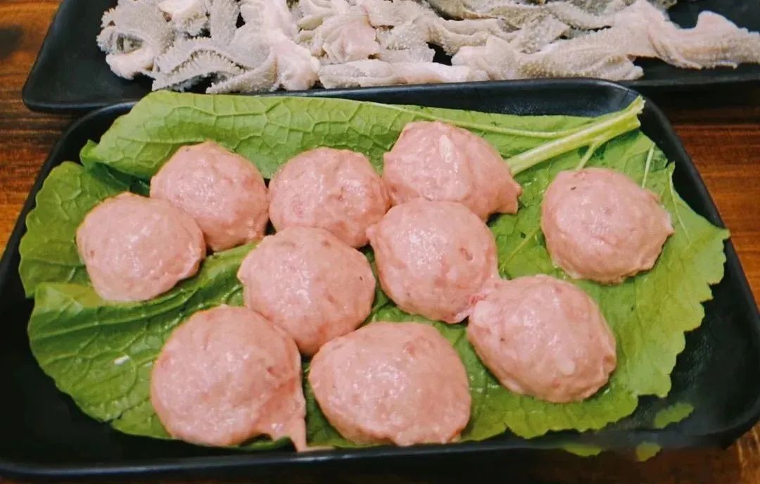 在潮州的牛肉火锅店,很多时候上的就是手打的没有水煮过的牛肉生丸,